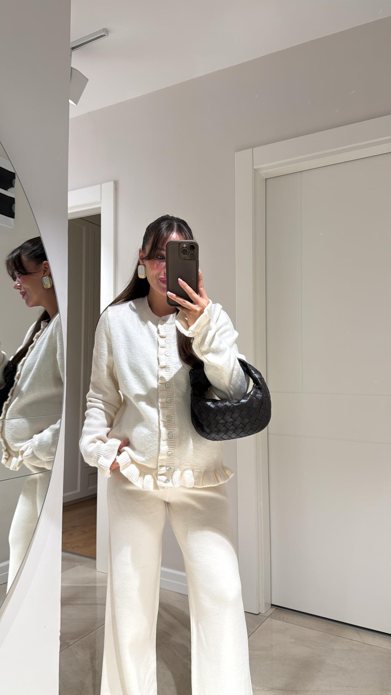 Krem Fırfırlı Triko Hırka (Bhrk310)