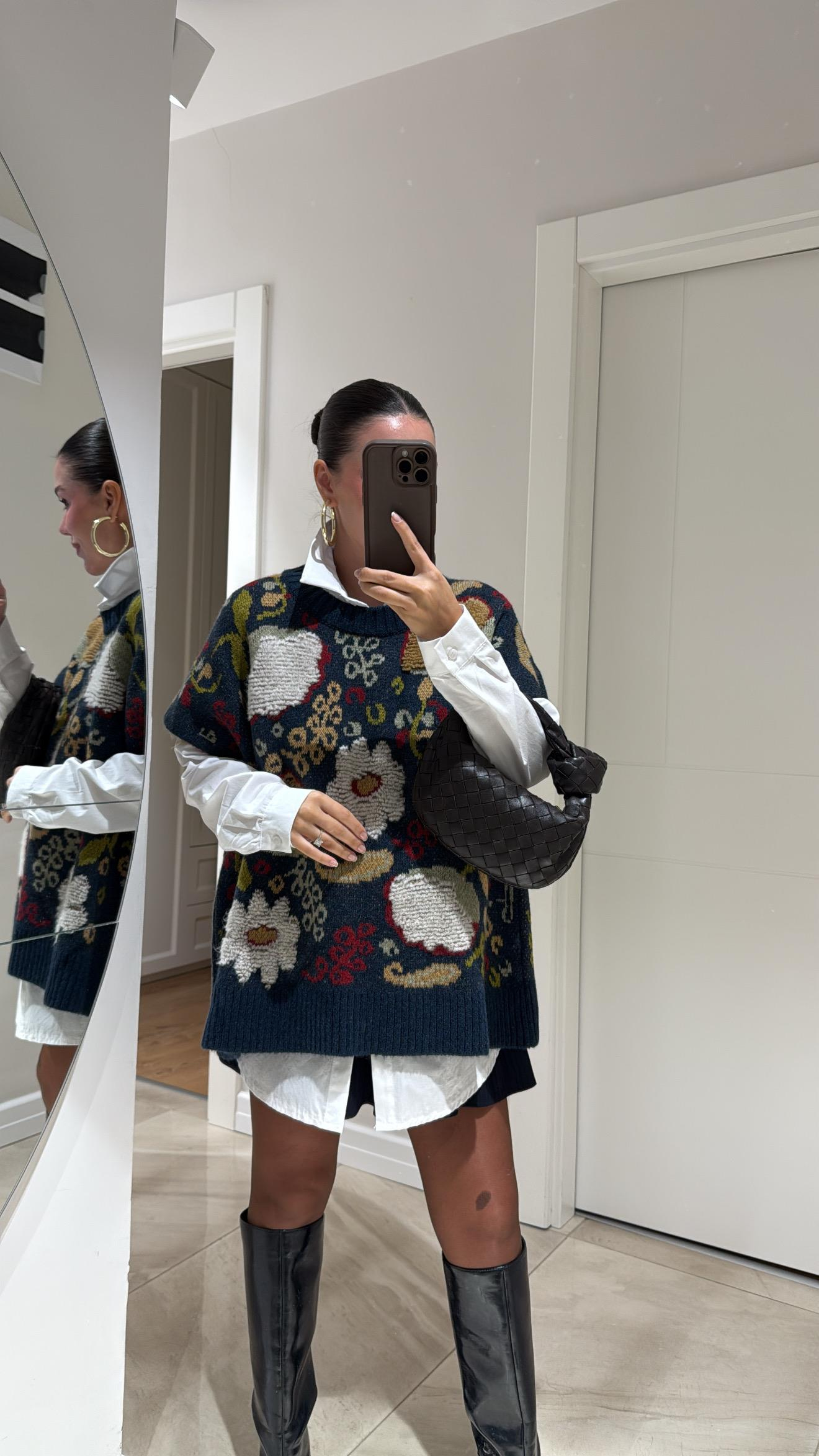 Lacivert Çiçek İşlemeli Gömlek Süveter
