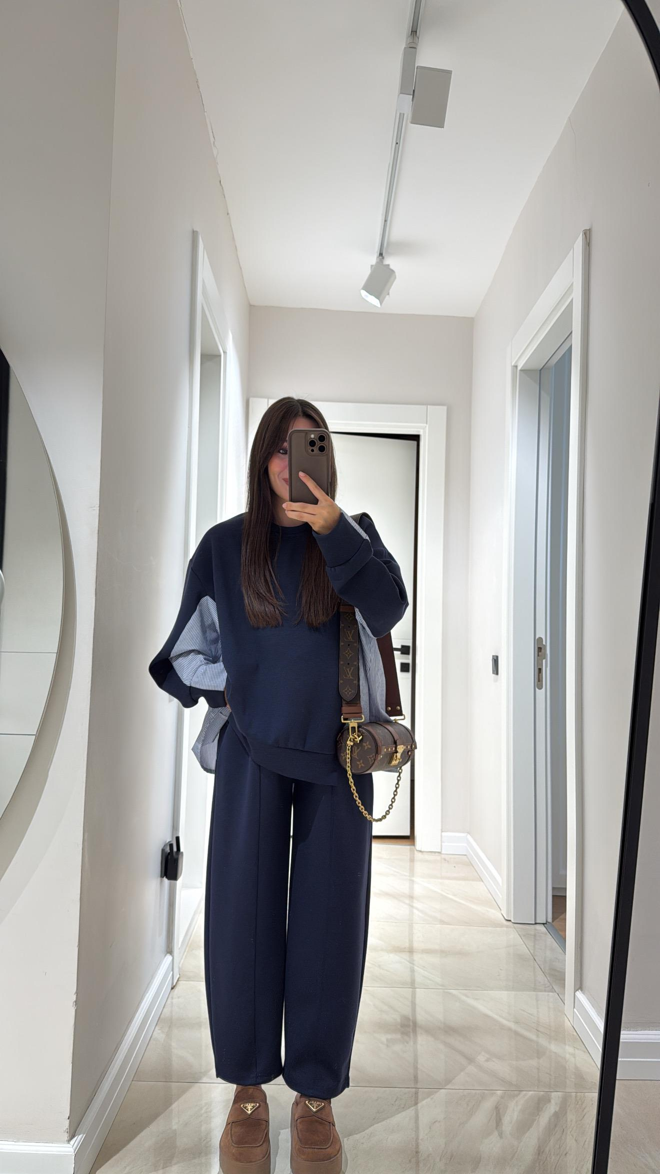 Lacivert Renk Gömlek Detaylı Şalvar Takım