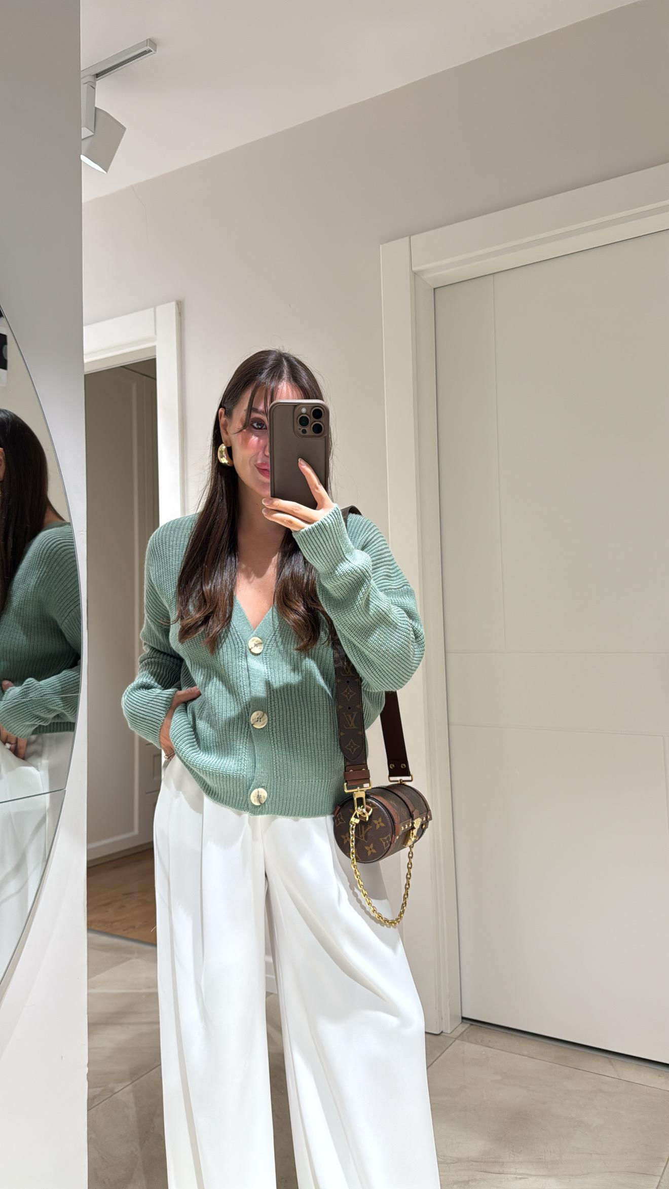 Mint Yeşili Üç Düğmeli Triko Hırka