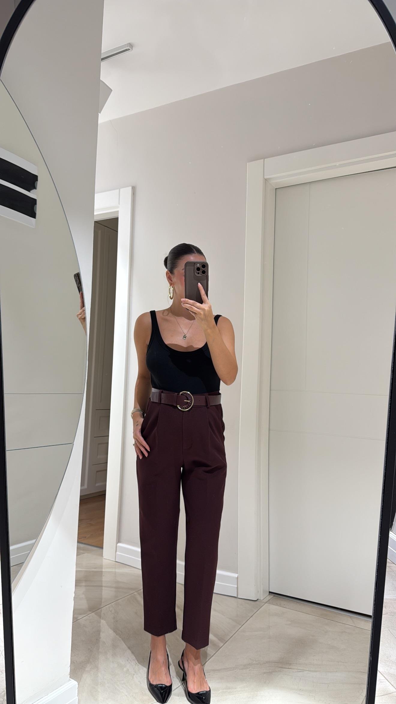 Mürdüm Kemerli Arkası Lastikli Havuç Pantolon (Bpan1392)