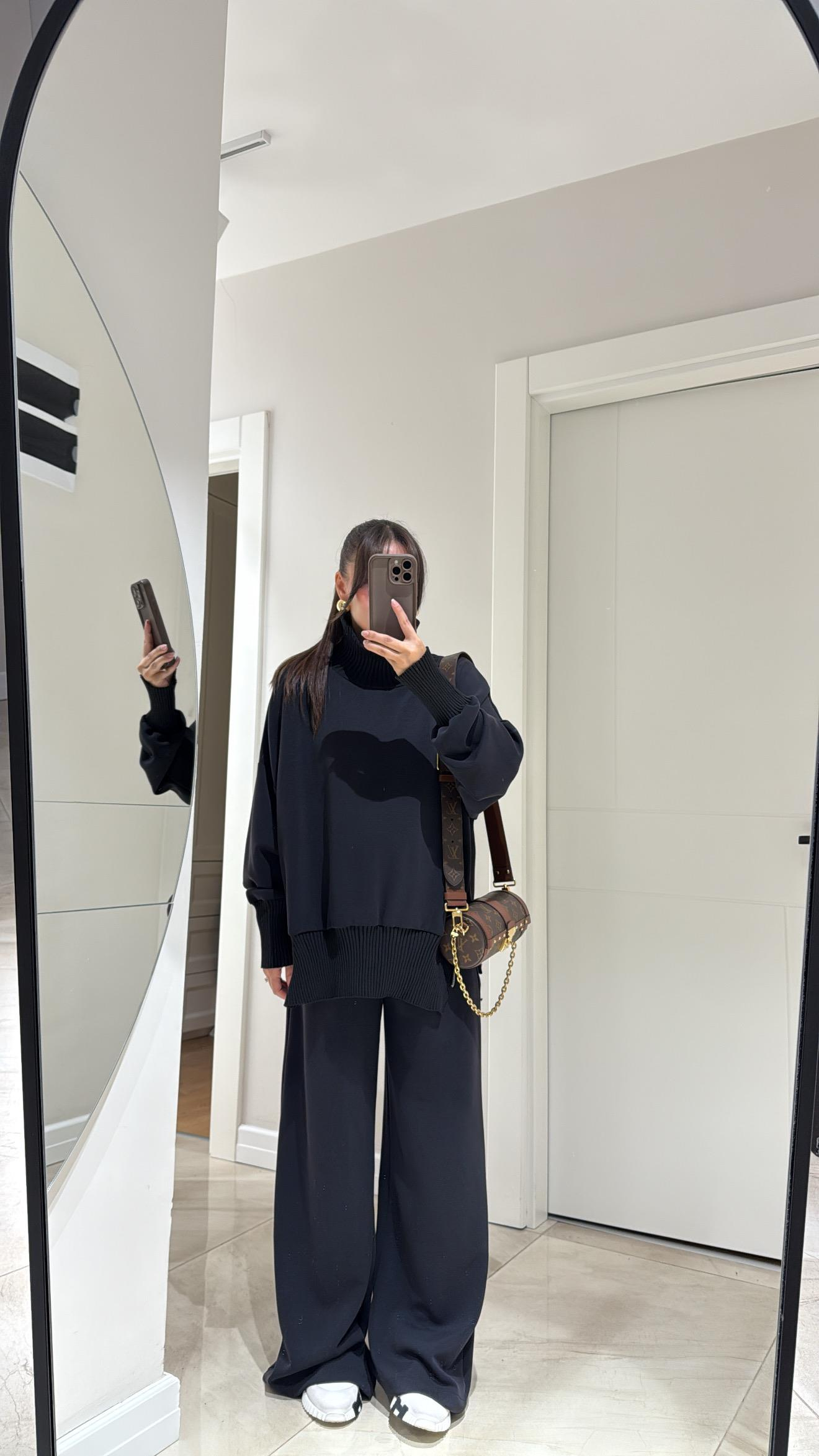 Siyah Balıkçı Yaka Yan Fermuarlı Modal Takım