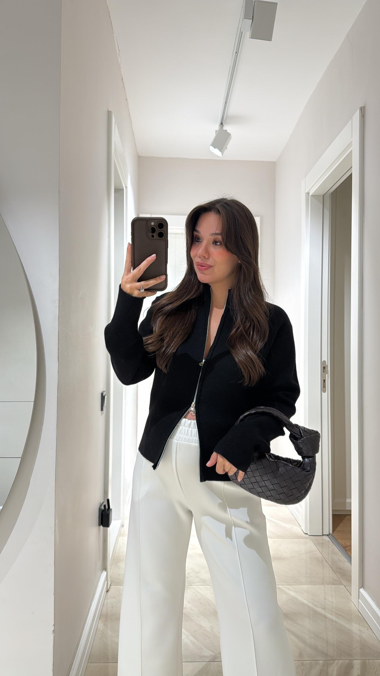 Siyah Çift Fermuarlı Örme Hırka (Bhrk327)