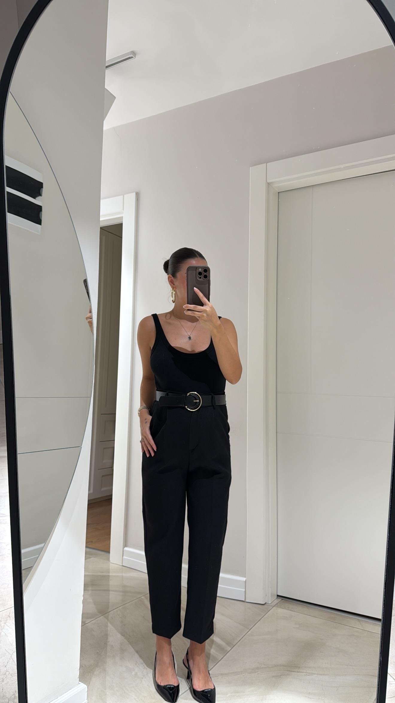 Siyah Kemerli Arkası Lastikli Havuç Pantolon