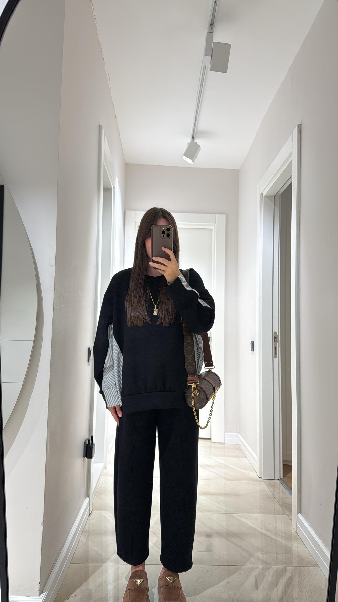 Siyah Renk Gömlek Detaylı Şalvar Takım