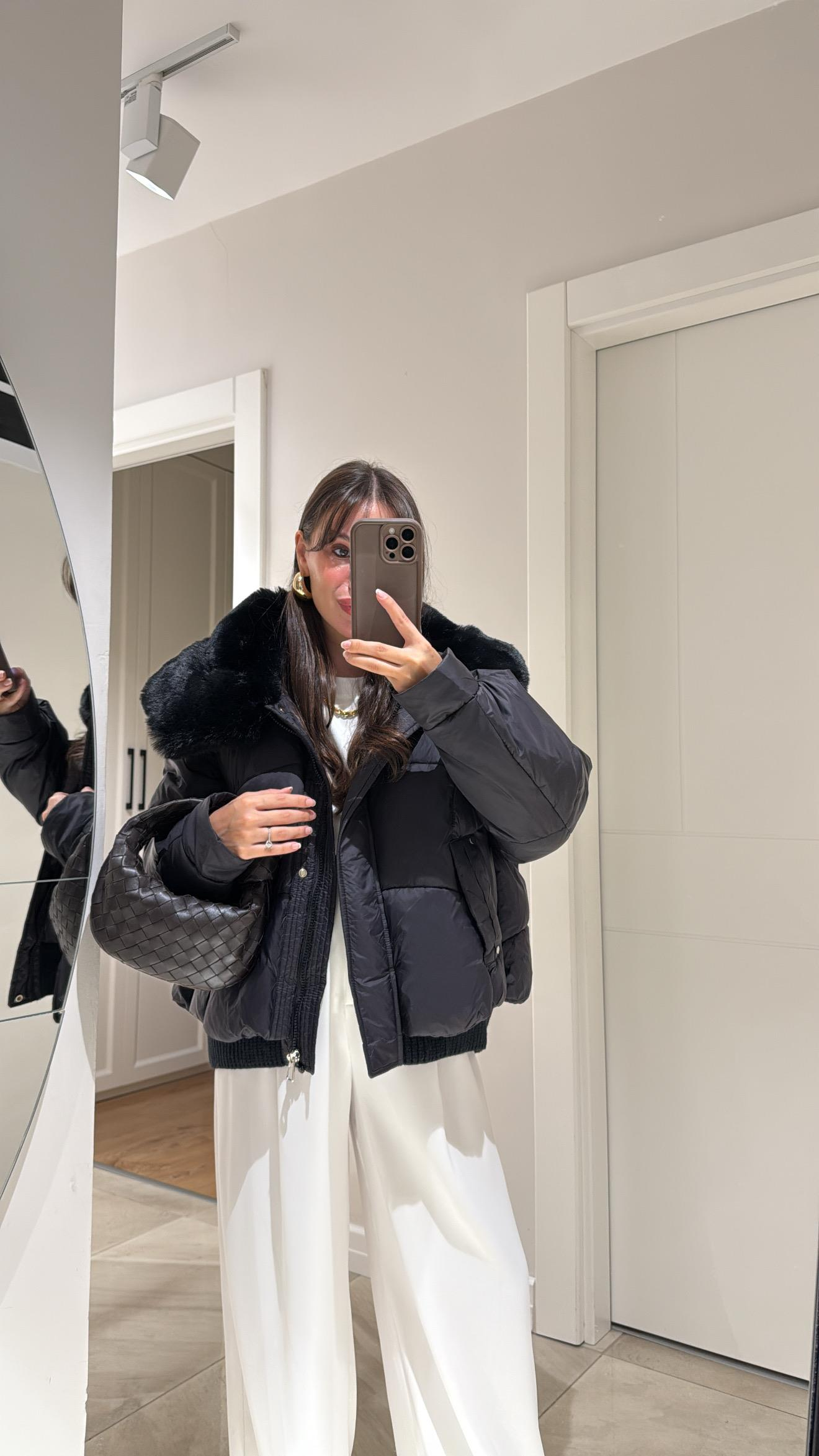 Siyah Yaka Kürk Detaylı Şişme Mont