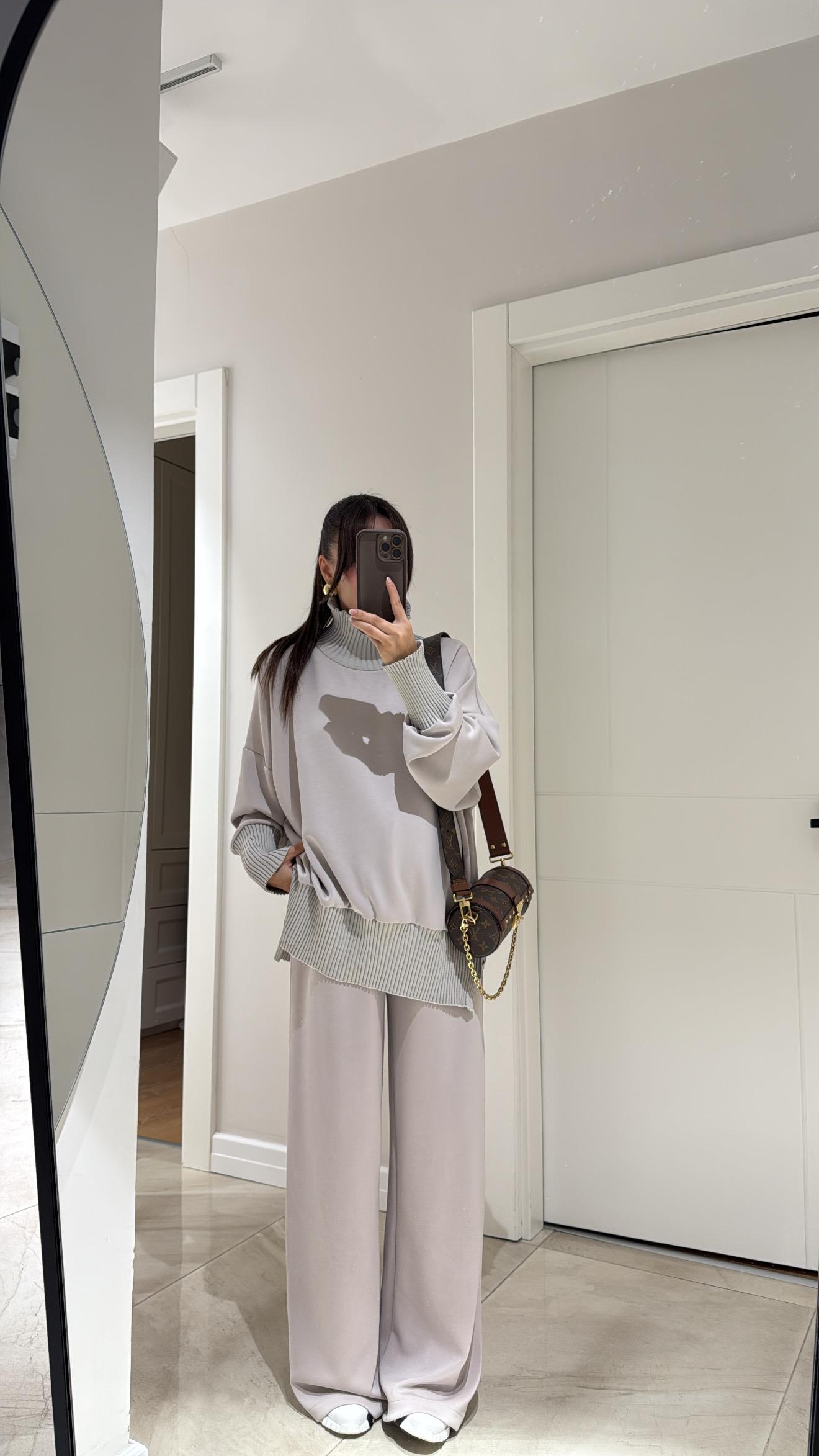 Boy 160 cm Üst : Balıkçı Yaka , Ribanalı , Yan Fermuarlı   / Alt : Bel Lastikli , Bel Bağcıklı , Cepli , Geniş Paça