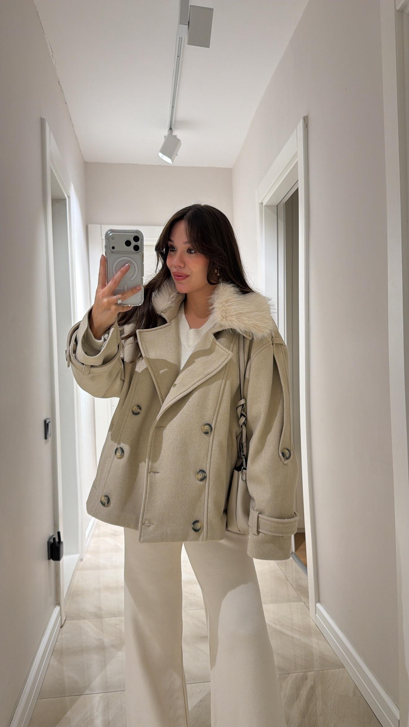 Taş Yaka Kürk Detaylı Kaşe Ceket